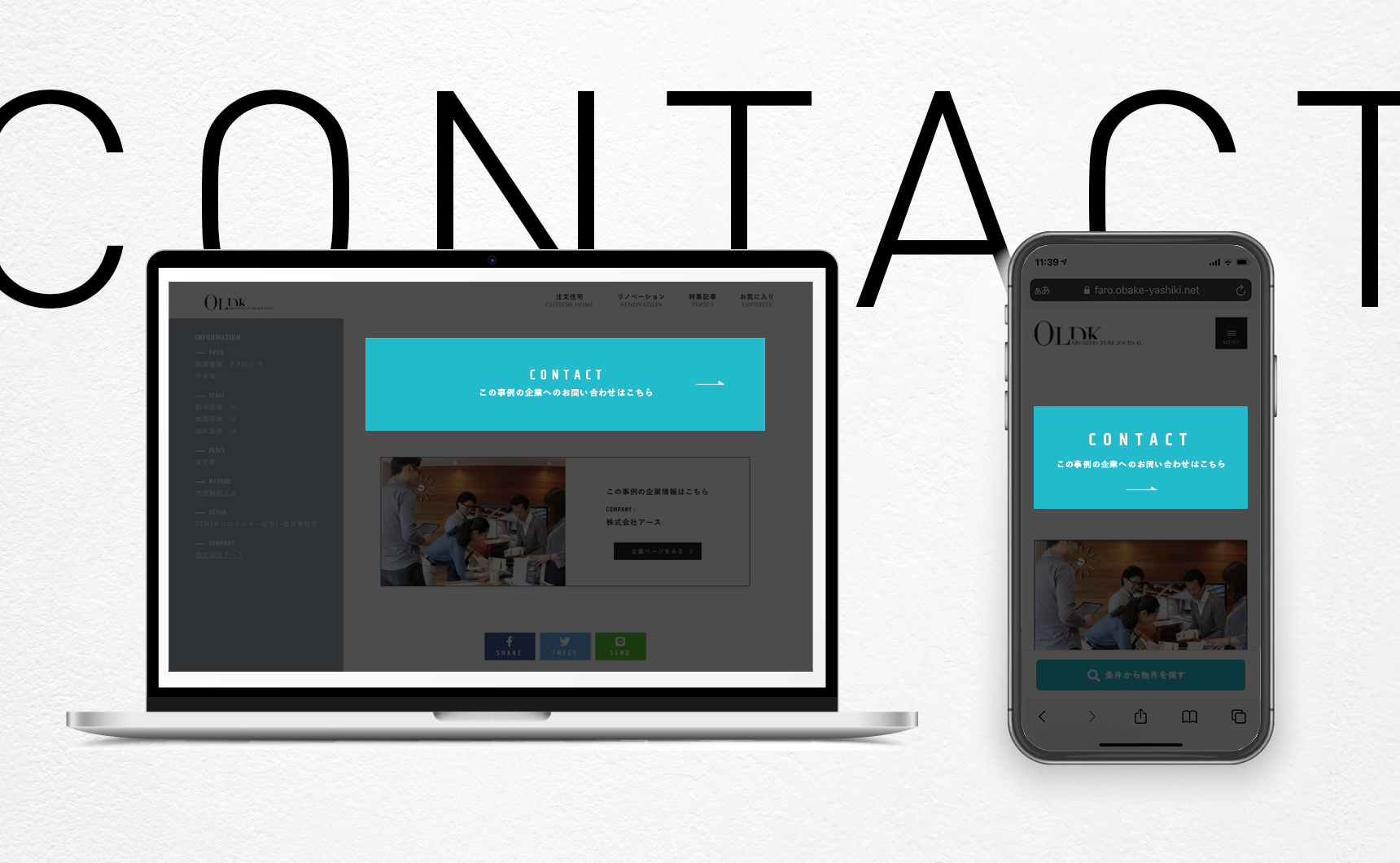 また事例の読み終わりでは、設計施工を行った企業へのお問い合わせボタンがあります。資料請求やご相談・訪問などのやりとりを直接行うことが出来ます。