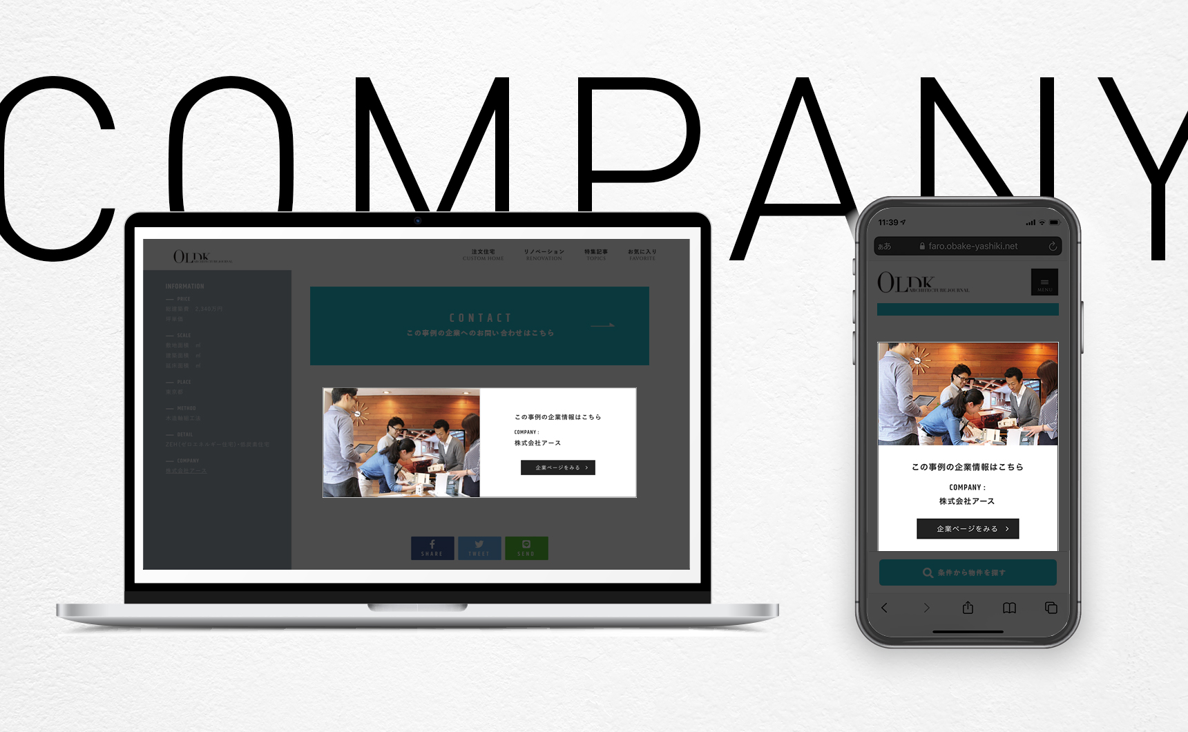 事例の設計施工を行った企業の詳細情報は、企業ページから見ることが出来ます。企業ページからは会社の強みや特長だけでなく、基本情報が記載されています。
